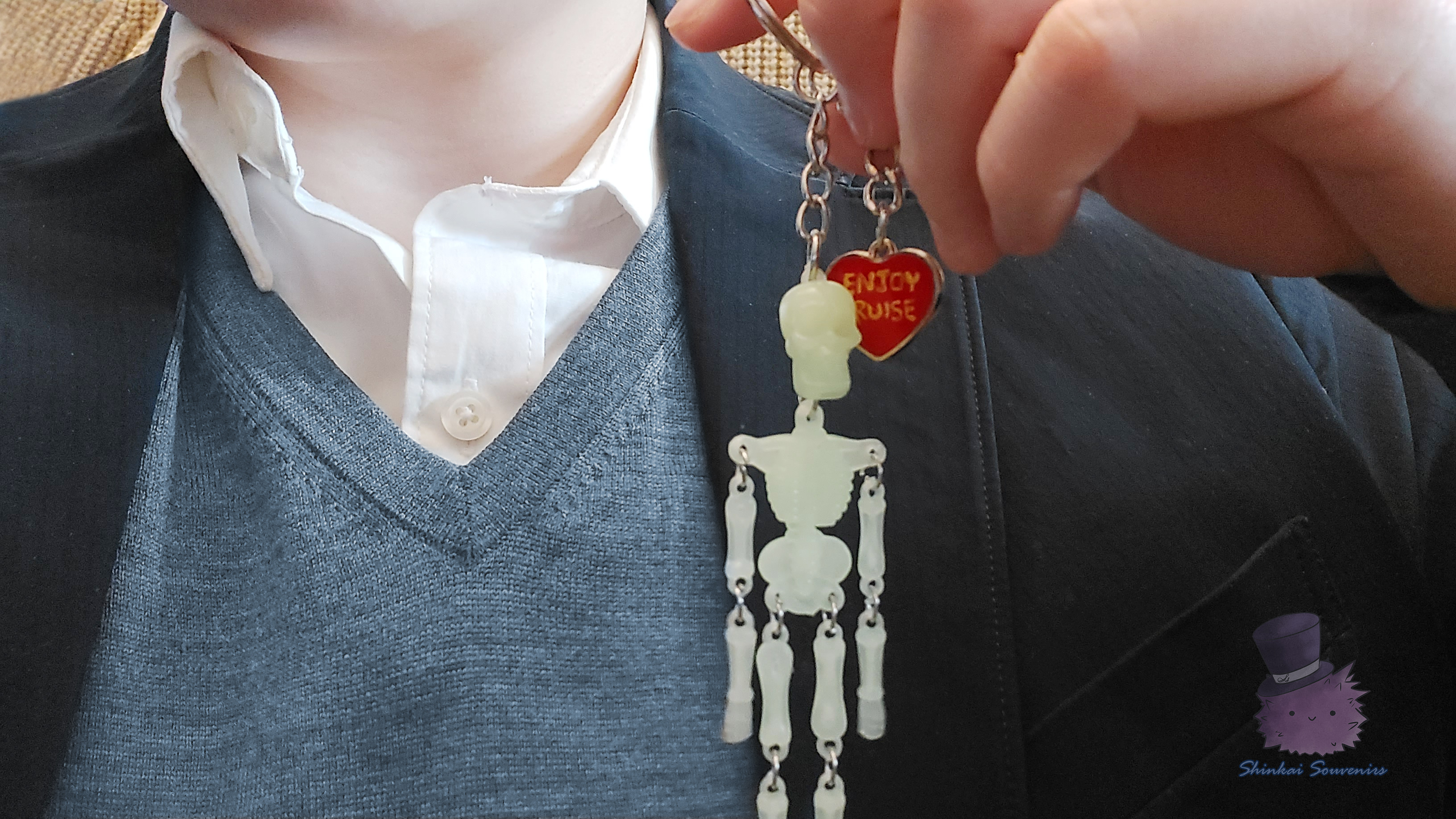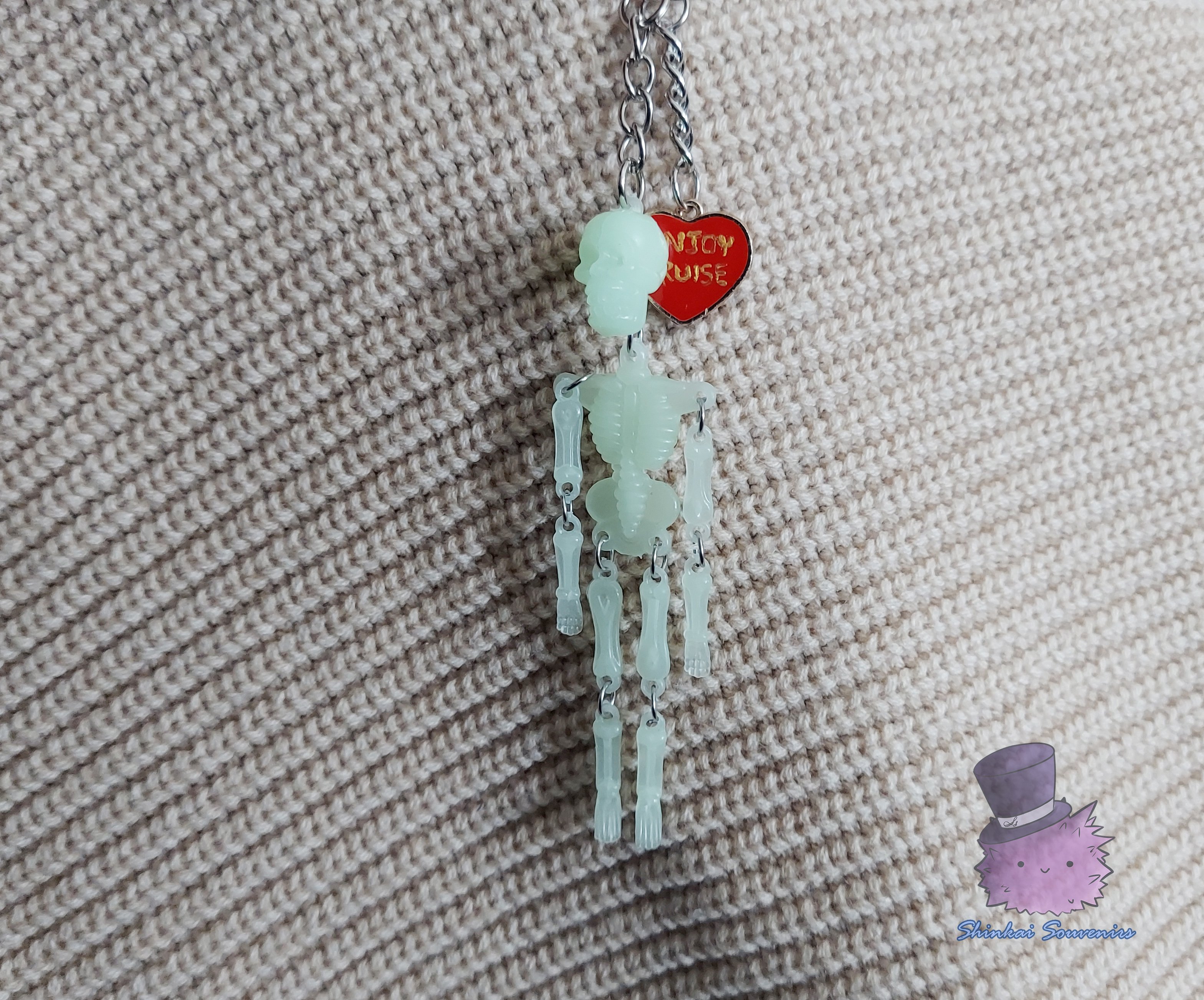 Glow-in-the-Dark Bony Skeleton Enjoy Cruise Heart Keychain Spy Family